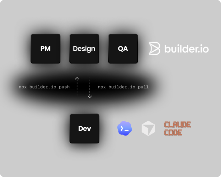 Push your branch to Builder to offload design review, product refinement, and QA to the people who own it. One workspace, real code.